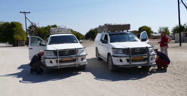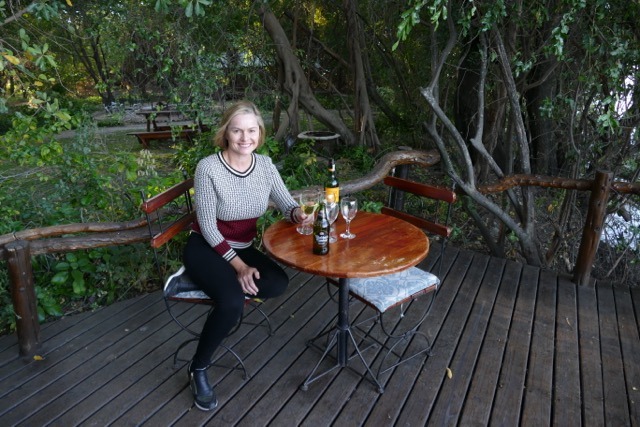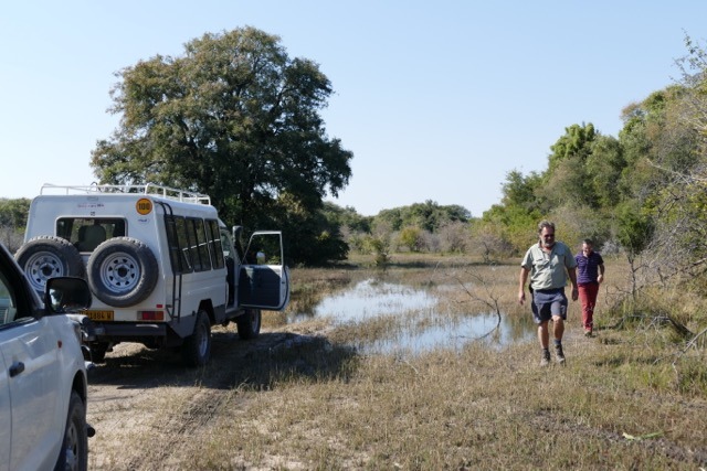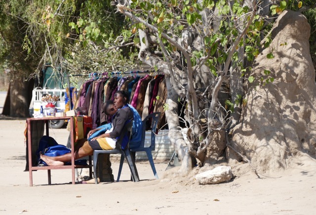 Halfway – 11 days to go!!! How time flies when you are having fun!!! Had a slow start to the day and enjoyed our morning coffee on the jetty-watching sunrise. Michaela and I decided a shower was essential. Despite lovely ablution facilities and hot water, the temperature control did not work at all and I jumped in and out of the shower while it went from hot to cold. Glenn and the rest of the group wisely decided to wait until our next destination. Once camp was packed up we headed to Choppies the local supermarket to buy supplies for the rest of our trip. We bought excess water, basic supplies and fresh meat for day 13, we will be braaing again. There were only 4 sirloin steaks and we bought them all plus a couple of sosaties to be able to have enough for the 6 of us. Ice was interesting, instead of bags of ice they had frozen bottles of still water, efficient indeed. We were dying for a fresh salad and our only option was some rather sad looking lettuce and slightly green tomatoes. Hopefully the lettuce survives until tomorrow and the tomatoes ripen, we shall see. Next stop the bottle store for Windhoek beer – wine and bubbly already purchased, we planned that well to be sure we got the good stuff. We hit the road for Etsha 13, now the more serious driving begins. A two-lane road full of potholes and rocks. At the turnoff to Etsha 13 we waited at the local village for our escort to navigate the thick sand and river crossing. Now the fun begins… As always in Africa, the wait took some time, we were waiting for two guests who were arriving from Maun by bus! I whiled away the hour by capturing some of the local flavor. Eventually our escort sent us with a tour guide who was returning from hospital and heading back to Guma Lagoon Lodge. In Africa they always “make a plan”. It was not too bad though without an escort we would never have found the track to the lodge. It was 13km’s of sand and water with a few exciting moments, one when Fritz (the driver/tour guide) got out to investigate the best route across the water. The good news is we all made it and settled in to a beautiful lodge though quite remote. The lodge sits on Guma lagoon and our campsite is nestled amongst the trees, another perfect “home” for two nights. Yet again we have a challenging shower – no chance of a long shower as you will be scalded or freeze to death, a novel way of water management. The day was concluded with sundowners on the deck followed by dinner in the lodge. Of course any interest in getting online was out – no ability to access the Internet and the mobile network not that stable either. Does help you enjoy the moment, get close to nature and relax. Dinner was lovely – roast chicken followed by apple crumble. Finished the evening off with a whiskey at the bar served by the owners’ mother. She reminded me of my Mom, all she was missing was her fob watch! Was fun chatting to the locals and the NZ pilot, the resident pilot in the delta. Of course after a whiskey the helicopter ride sounded good and was booked!!!