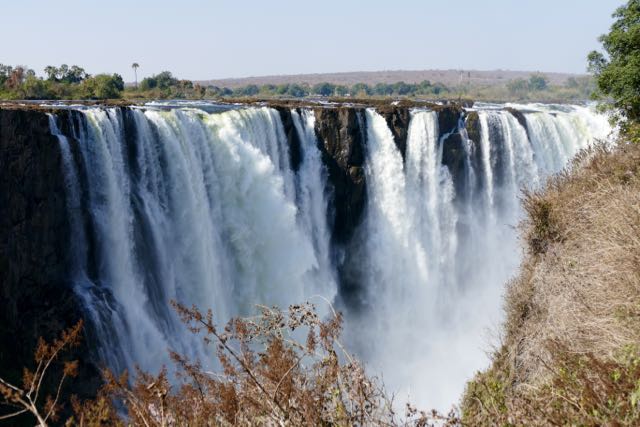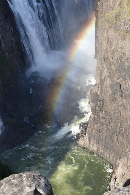 Up at 6am to pack up and be at our drop off point by 8am. Asco drivers met us to check and accept our 4×4’s, they were driving them back to Windhoek and we were heading to Victoria Falls. Had arranged transfers to the border and then on to Vic Falls. A bit of a slow border crossing due to all the tourists and only one immigration counter! It was okay, we were rewarded with a warm welcome at Victoria Falls Safari Lodge. A night of luxury was in store. We had a quick lunch then headed out to explore the falls – what an incredible sight. Spent about 3 hours there and then headed back for my first bath and hairdryer in 3+ weeks. Felt good to be clean and my hair looked more respectable!!! We enjoyed our last sundowners while watching sunset over the bush. As it got dark the sliver of a new moon appeared and Jupiter, Mars and Venus lined up nearby. We opted for dinner at the The Lodge – crocodile and warthog fillets were the favourites with a lovely bottle of Vergelegen 2009 Cabernet. We toasted to a great trip.
