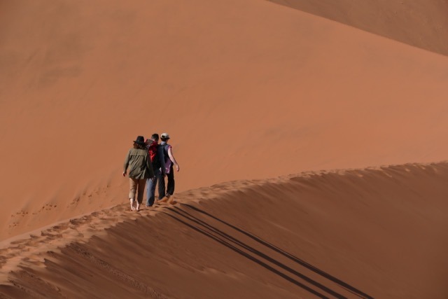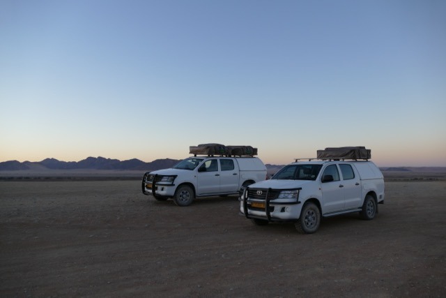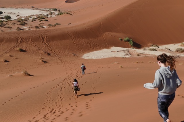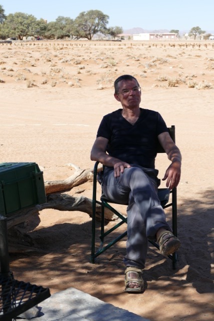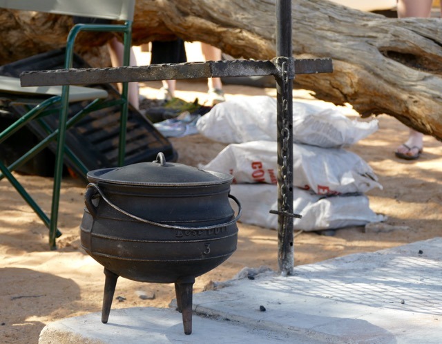 We headed out at 6am to experience sunrise on the dunes. Our final destination was Sossusvlei and Deadvlei. What an amazing experience… I have never seen light in that way. I think I may have enough photographs of sand dunes to last a lifetime. We watched the sunset from the top of a dune and marveled at the changing light. Then we headed to our final destination where we climed up the largest sand dune “Big Daddy” and then ran down and crossed Deadvlei. This should be on everyone’s bucket list. Now back at our campsite we are getting ready for another dinner under the stars. Andy is preparing oxtail potjie and I am making “roaster broad”. Of course the bubbly is in the fridge and the red wine breathing!