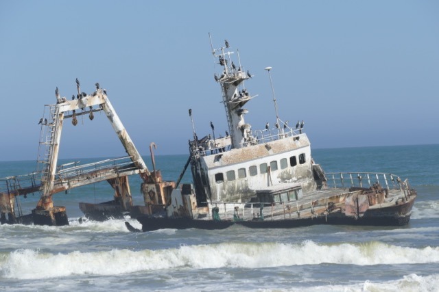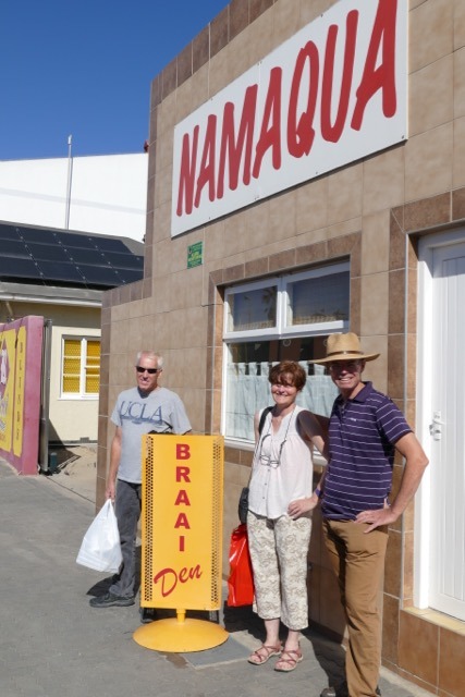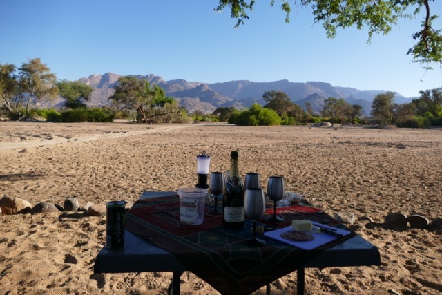 Today after a couple of hours of work (had some good internet access and had to service my clients, candidates and keep my colleagues happy) we headed out for fresh supplies. I took the wheel today and drove us to White Lady. We only had one stop along the way, a shipwreck on Skeleton Coast. Looked a bit desolate, would hate to be stranded there. We have set up camp and are enjoying beer and bubbly as the sun sets and then its off to dinner in the lodge. They allow campers to dine at the lodge, that saved another day of cooking. The weather is incredible and tonight will be full moon so we will come back for a nightcap around the fire. What more could one ask for… Unfortunately Dana was not too well so we decided on no nightcap and an early start, plan to hike to the White Lady.