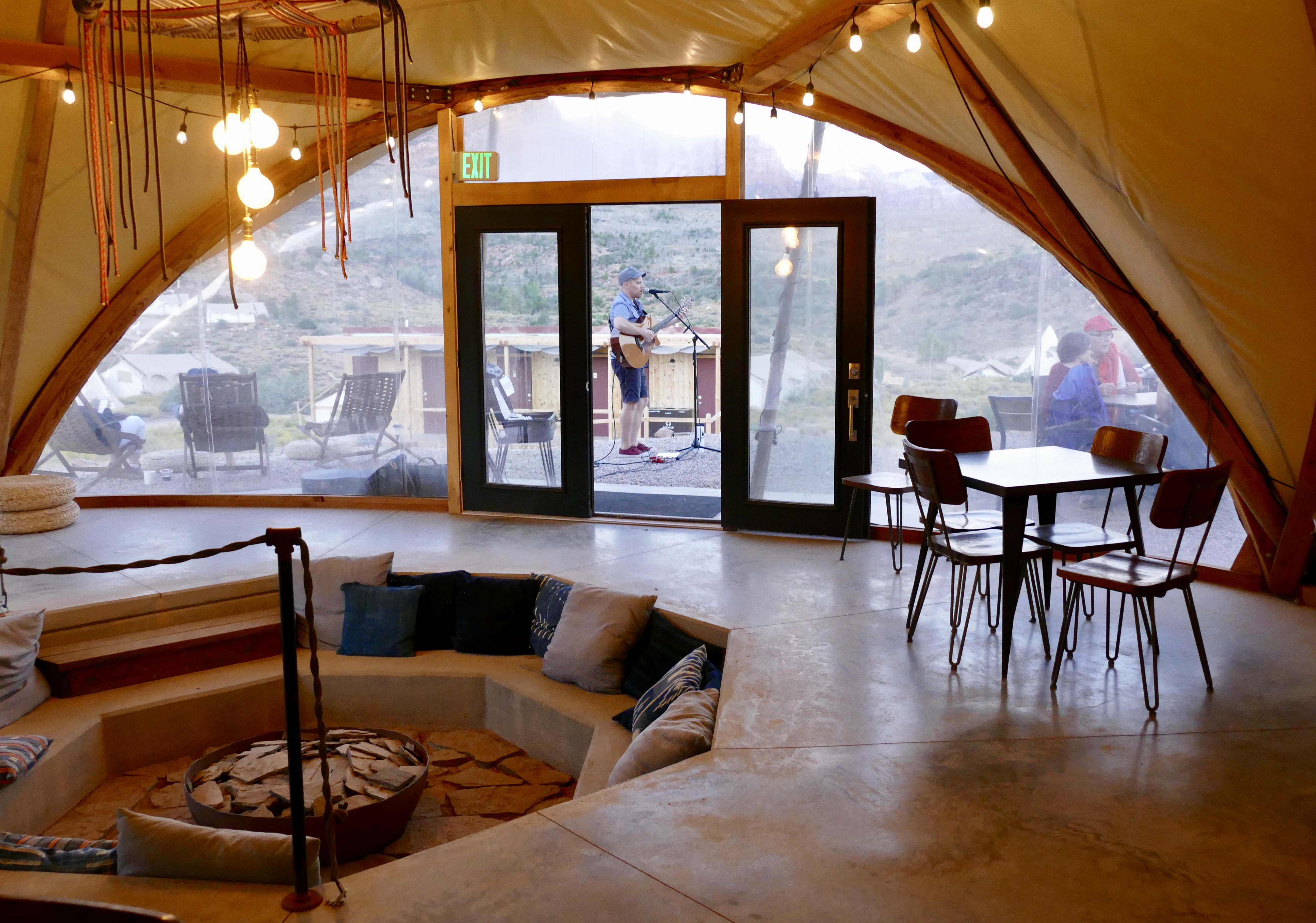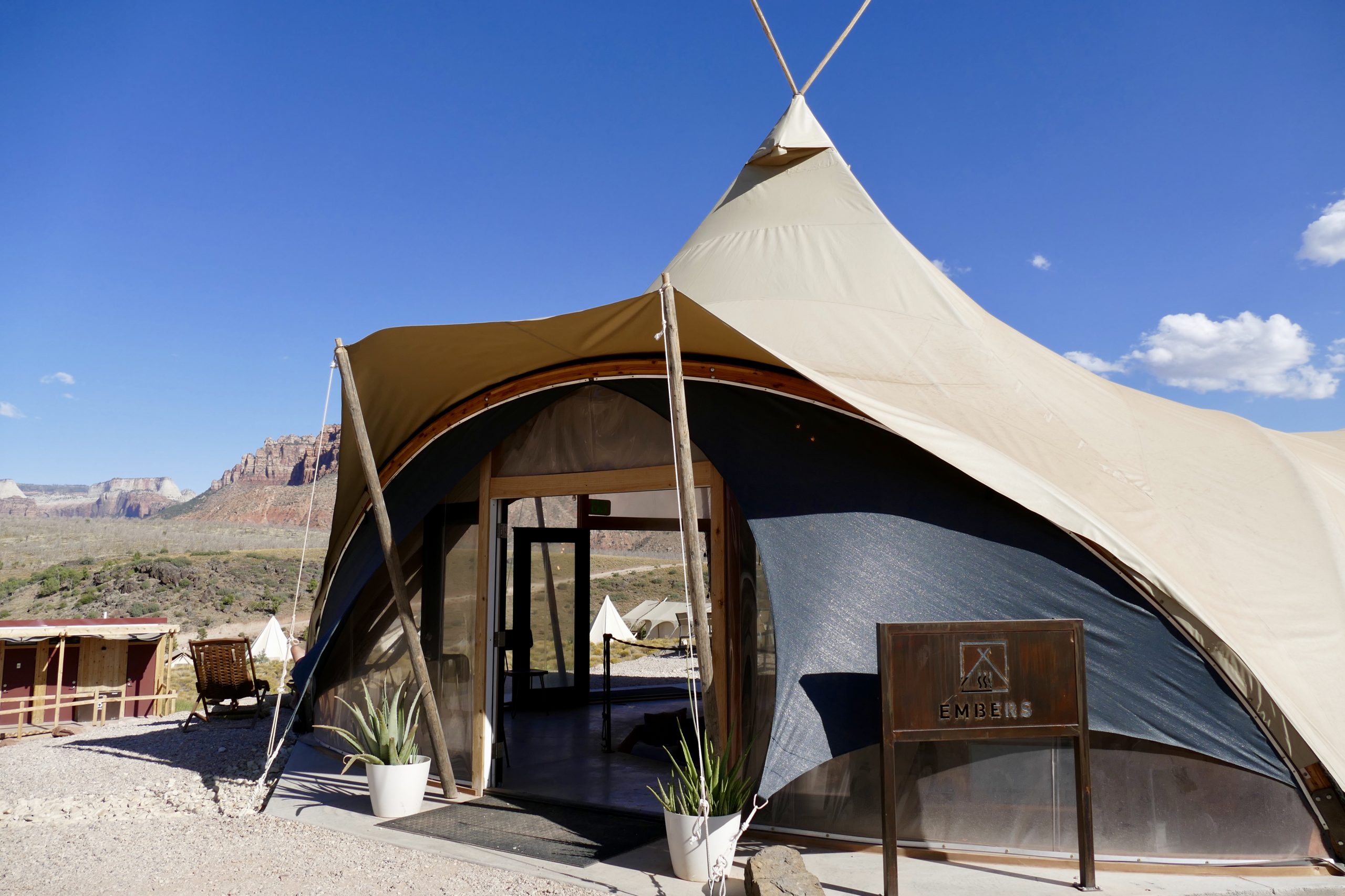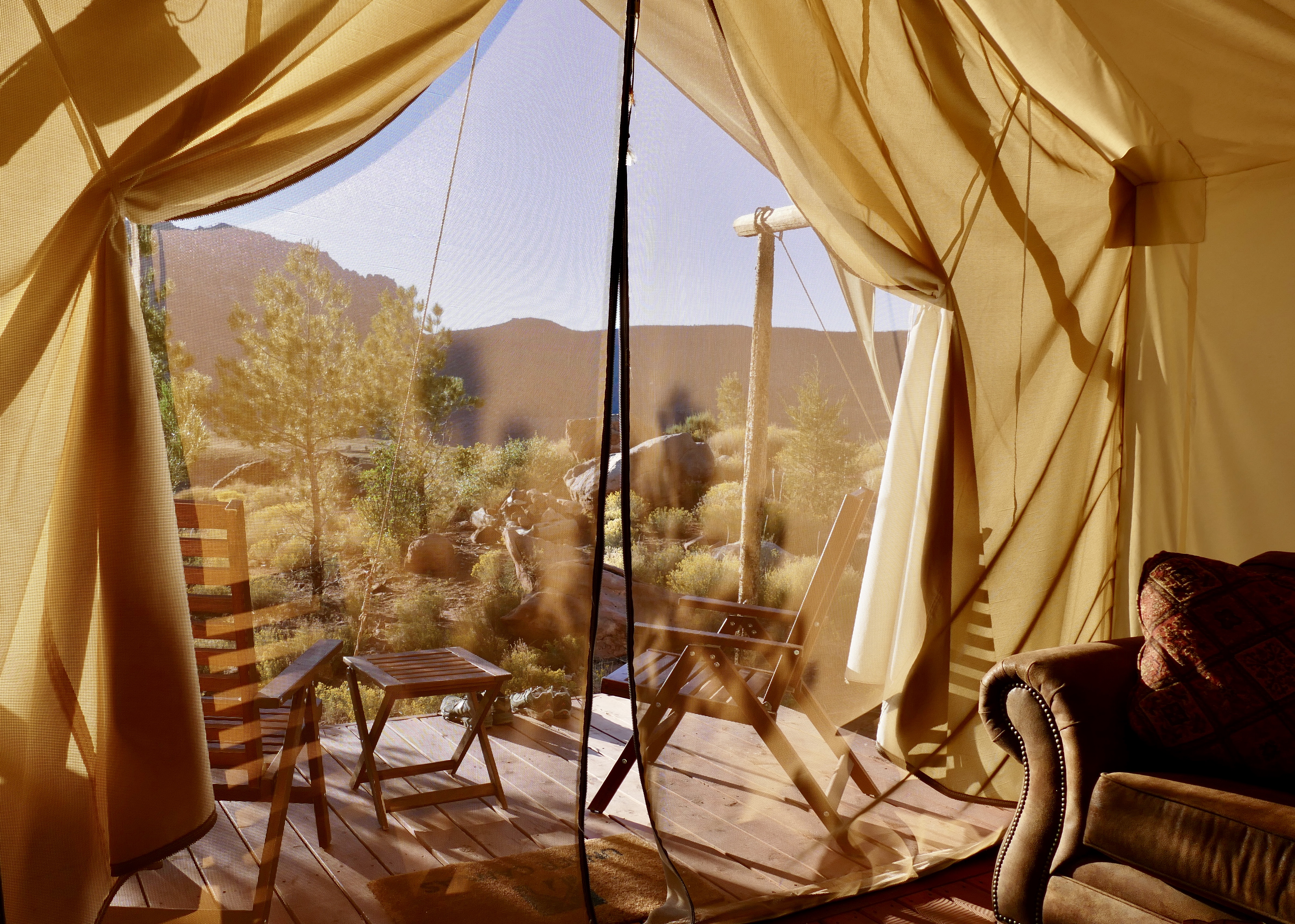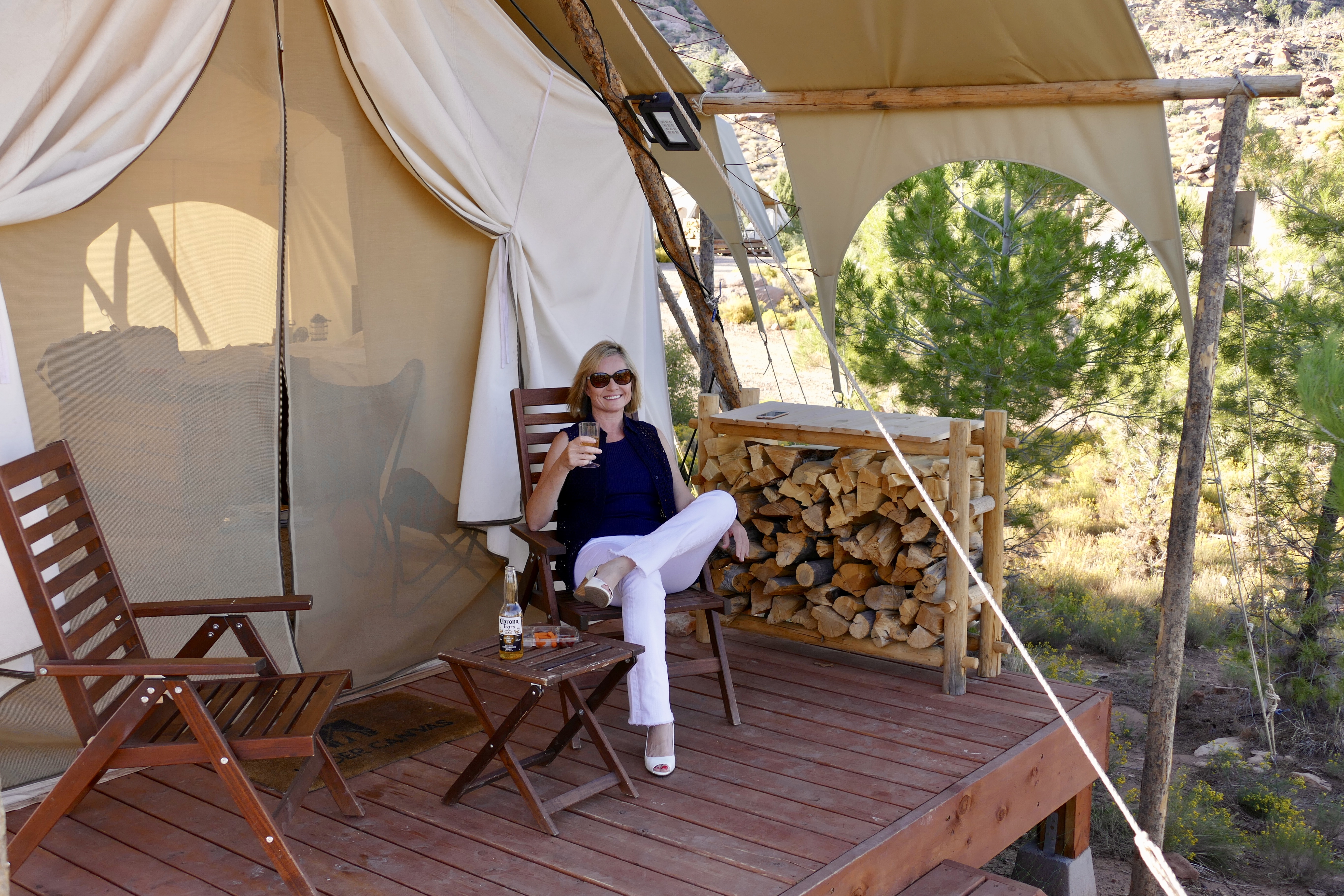 Spent 3 nights at Zion Under Canvas. What an awesome place. It is on the edge of Zion National Park and about a 30-minute drive to the visitor center. It is glamping American style. Each room is a tent with a wooden floor, small bathroom with shower, a seating area inside the tent, and a porch where you can sit and look out across the canyon and watch the stars at night. This property is completed off the grid – no WIFI, all electricity from solar with a small restaurant to serve guests and basic grilling facilities.