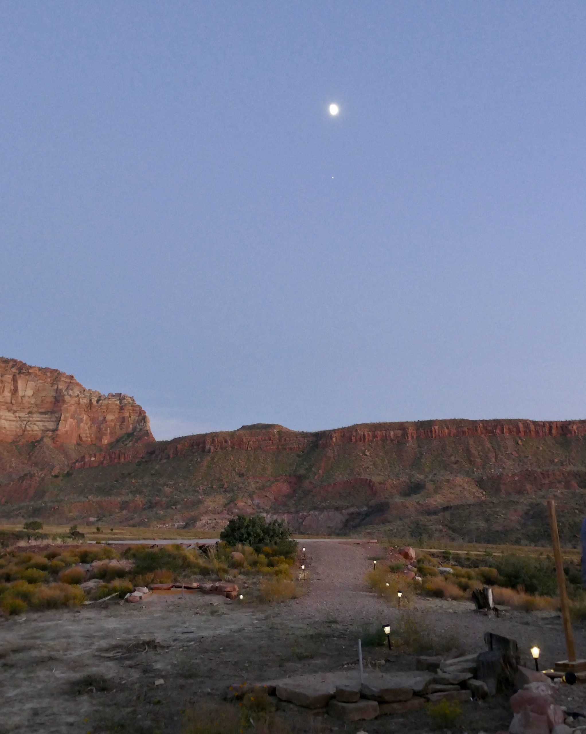 Our stay at Zion Under Canvas did not disappoint – sundowners on our porch again(!) followed by dinner at the restaurant where we were entertained by a singer/guitar player. Wrapped up the evening with smores by the camp fire and chatting to our neighbors, sharing experiences.