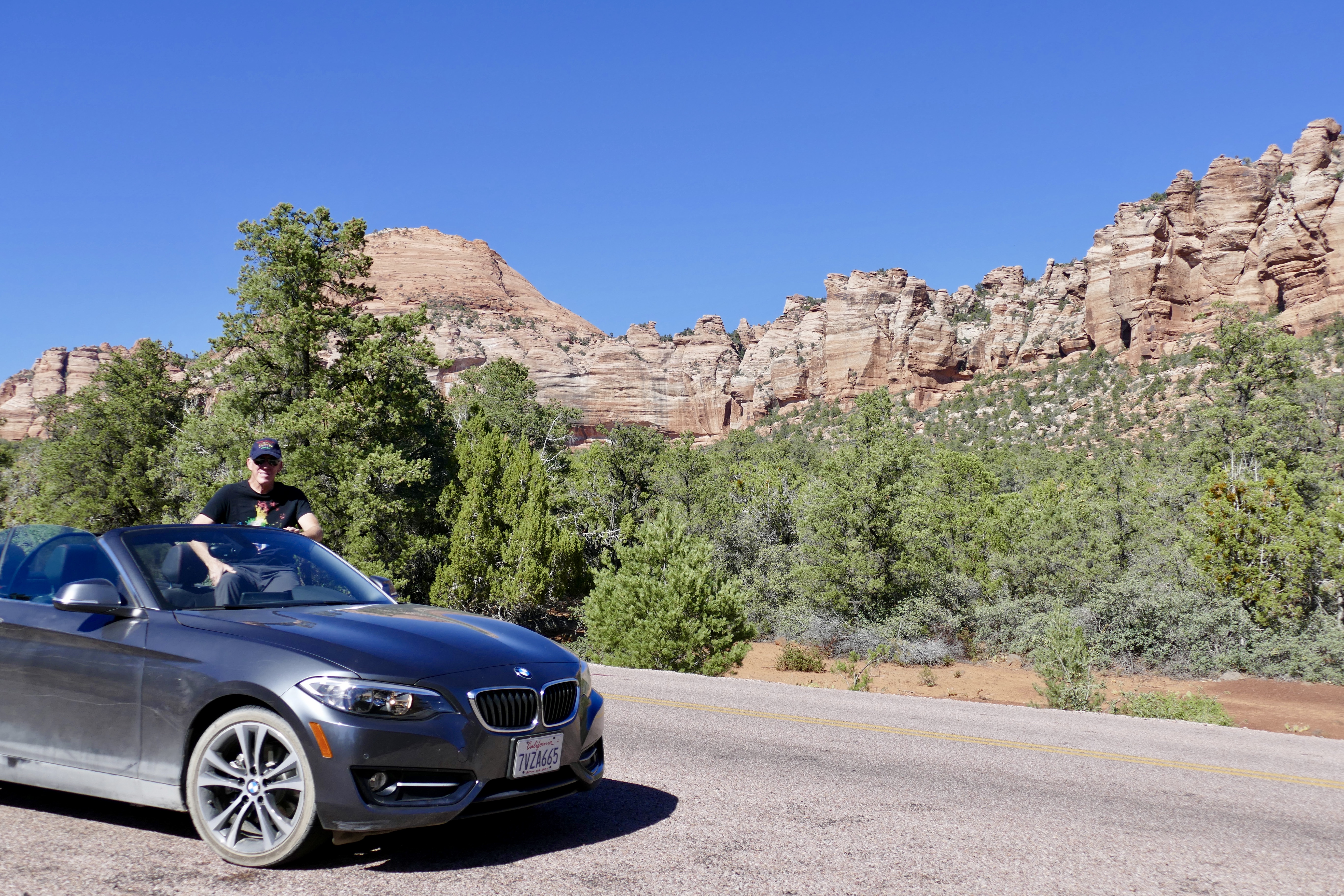 Our second full day we decided to explore a different and less popular part of Zion Park, again thanks to a great recommendation. We chose to hike Wild Cat Canyon Trail– this trail was in stark contrast to the day before, meandering through pine forest, meadows, dessert vegetation and concluding at a viewing point overlooking Wild Cat Canyon, spectacular. All in all, about a 9-mile hike. Getting some mileage in!!! Then headed on a drive to see the reservoir where we tried to turn our BMW 2 series into a 4×4… needless to say we could not and had to turn back on our attempt to circle the reservoir after making it about 80% of the way round. Found the only place for lunch and had a delicious burger before heading back to camp for some rest.