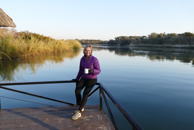 Woke up at 6am and enjoyed coffee on the river watching the sunrise. Then it was packing up and heading for Botswana. We had about a 5-hour drive from Runda across the border between Namibia and Botswana. Had lots of advice on how to handle the border crossing and all the challenges of fresh food etc. It was a synch and they charged us less …