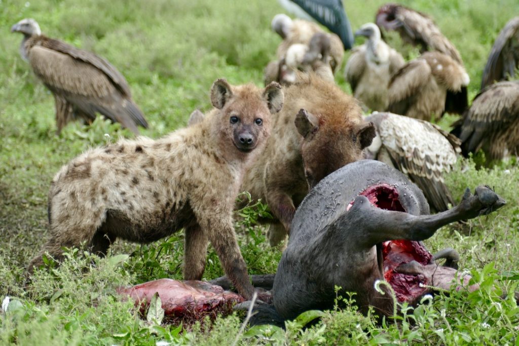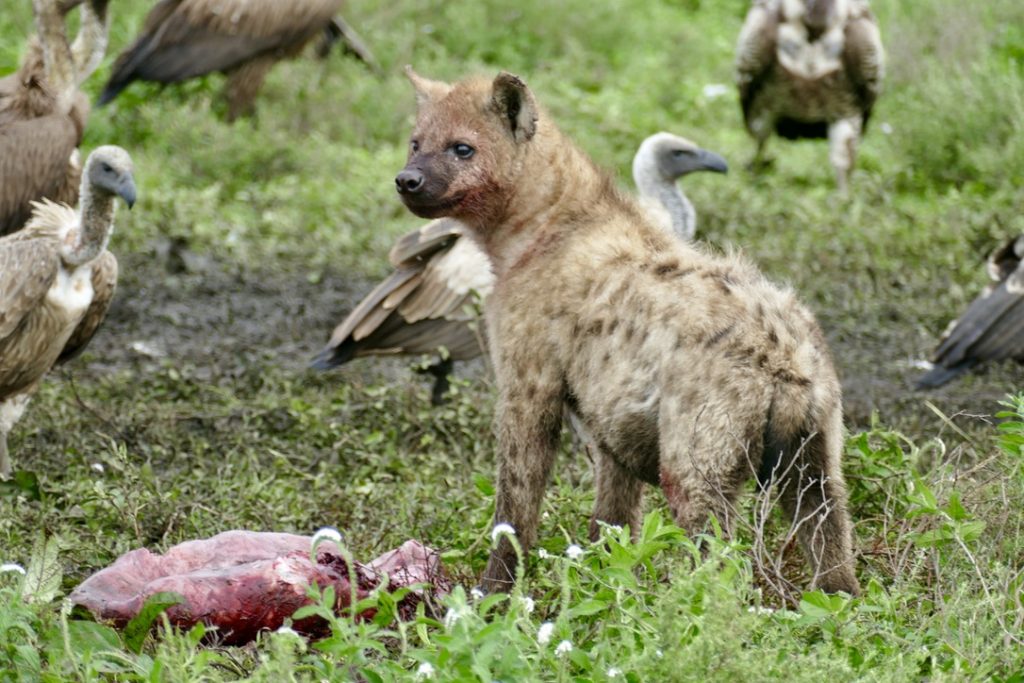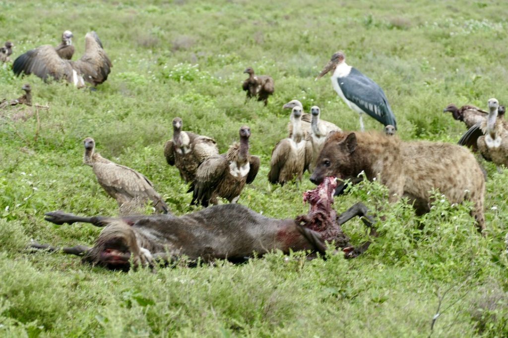 Opted for a 7am start. Off to find the cheetah and her cubs and see if we could witness the kill. We were rewarded with a couple new game sightings. The most notable was the hyena feast surrounded by vultures and Maribel stork. The animal behavior and interaction is fascinating and even Simonne was captivated by the hyena feeding on their kill.