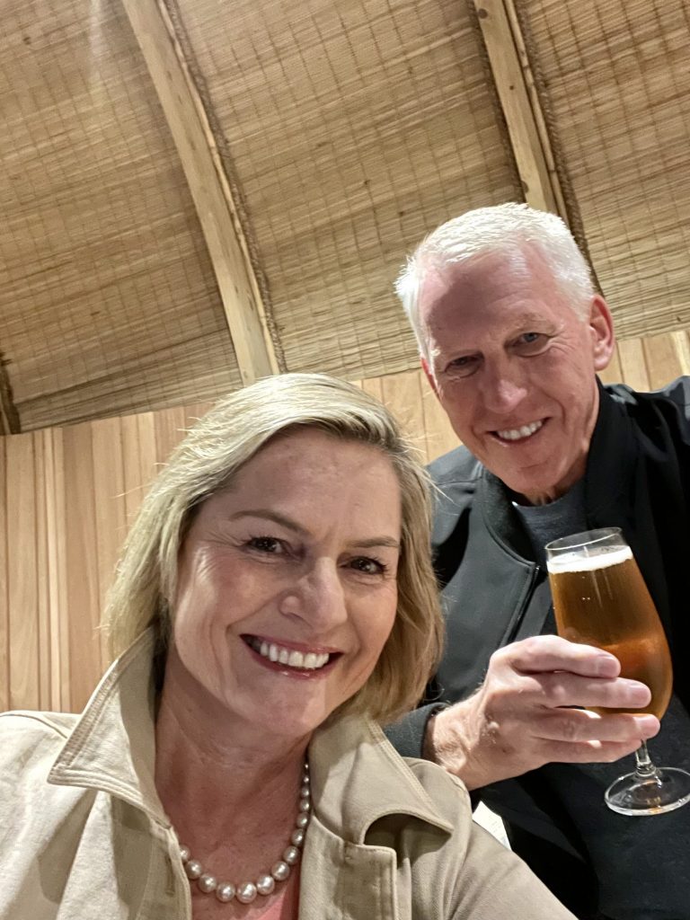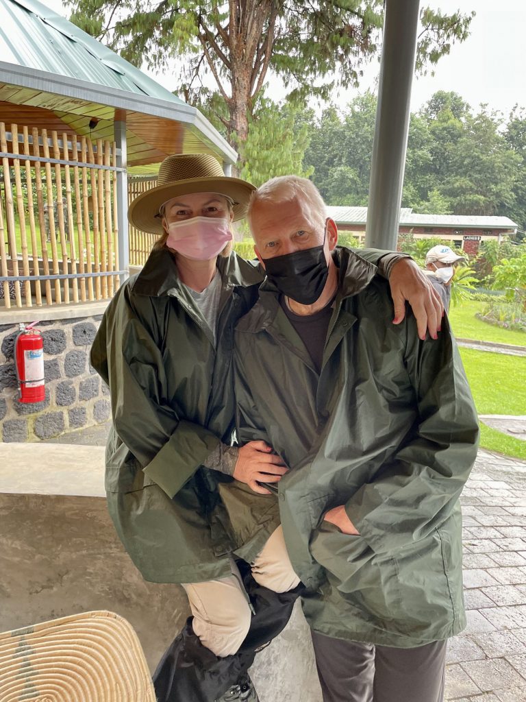 I would say this trek is “a walk in the park” all levels can manage. Given all the rain it was muddy and we were very happy to have the rain jackets to keep us warm. Glenn took advantage of Benjamin and his personalized service – boots and gaitors removed for him, spoilt!!! Spent the rest of the day relaxing and hanging out at the lodge. 6pm we met for sundowners ad to chat to Alli. Aimable was there and made sure we were well looked after. The fireside chats and dinner conversations so enjoyable… and of course the cold beer and wine by the glass…