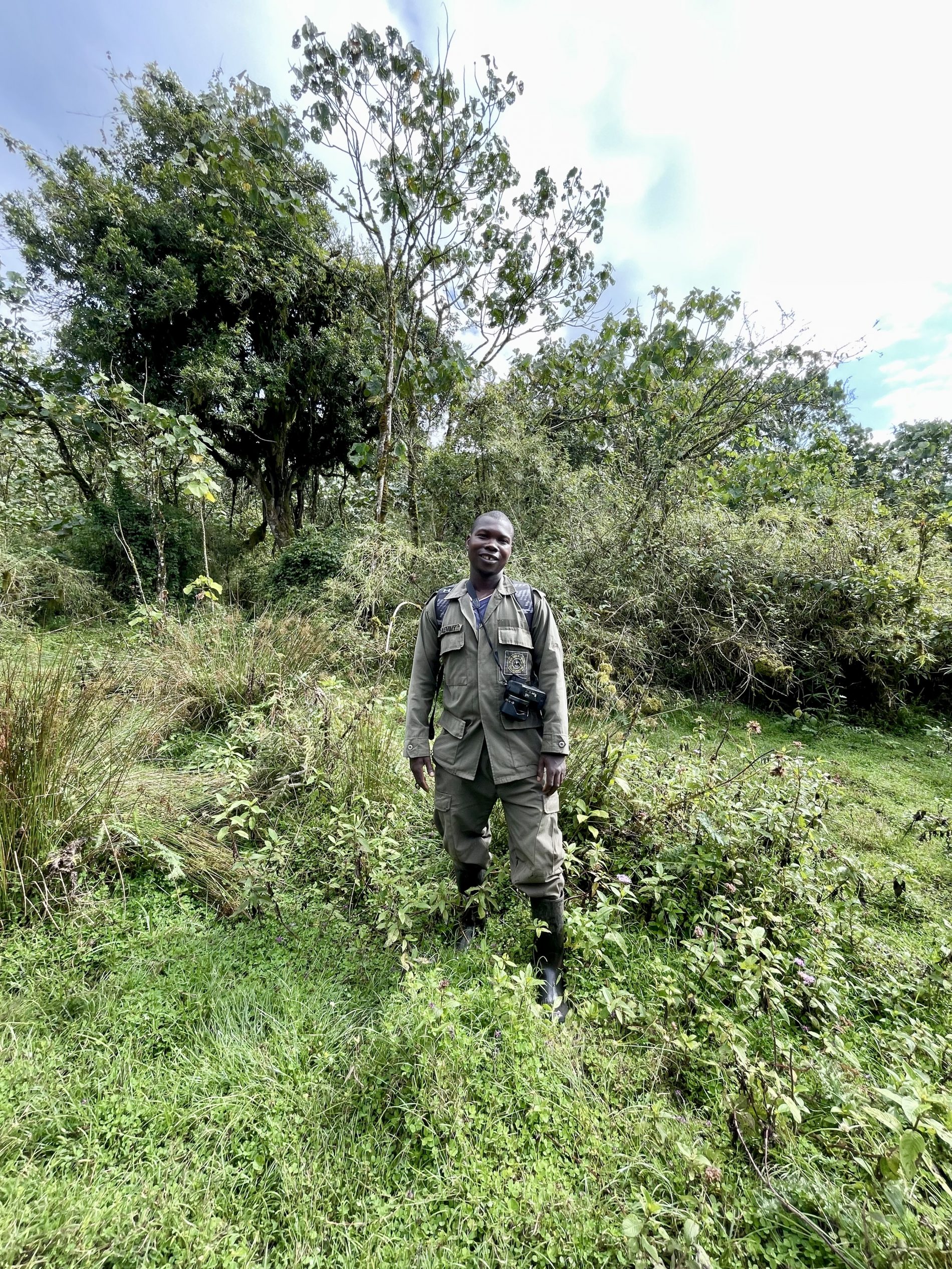 On arrival we hired porters – something we did for each trek. Helps employ the local villages and supports the economy, this is encouraged and recommended because they play a vital role in getting you to and from the gorilla troop. They are extremely helpful with some of the tricky trekking situations. Emme took care of us and guided me through the muddy and wet forest. Holding out a hand to steady me and helped me at river crossings – avoided me face planting in the mud.