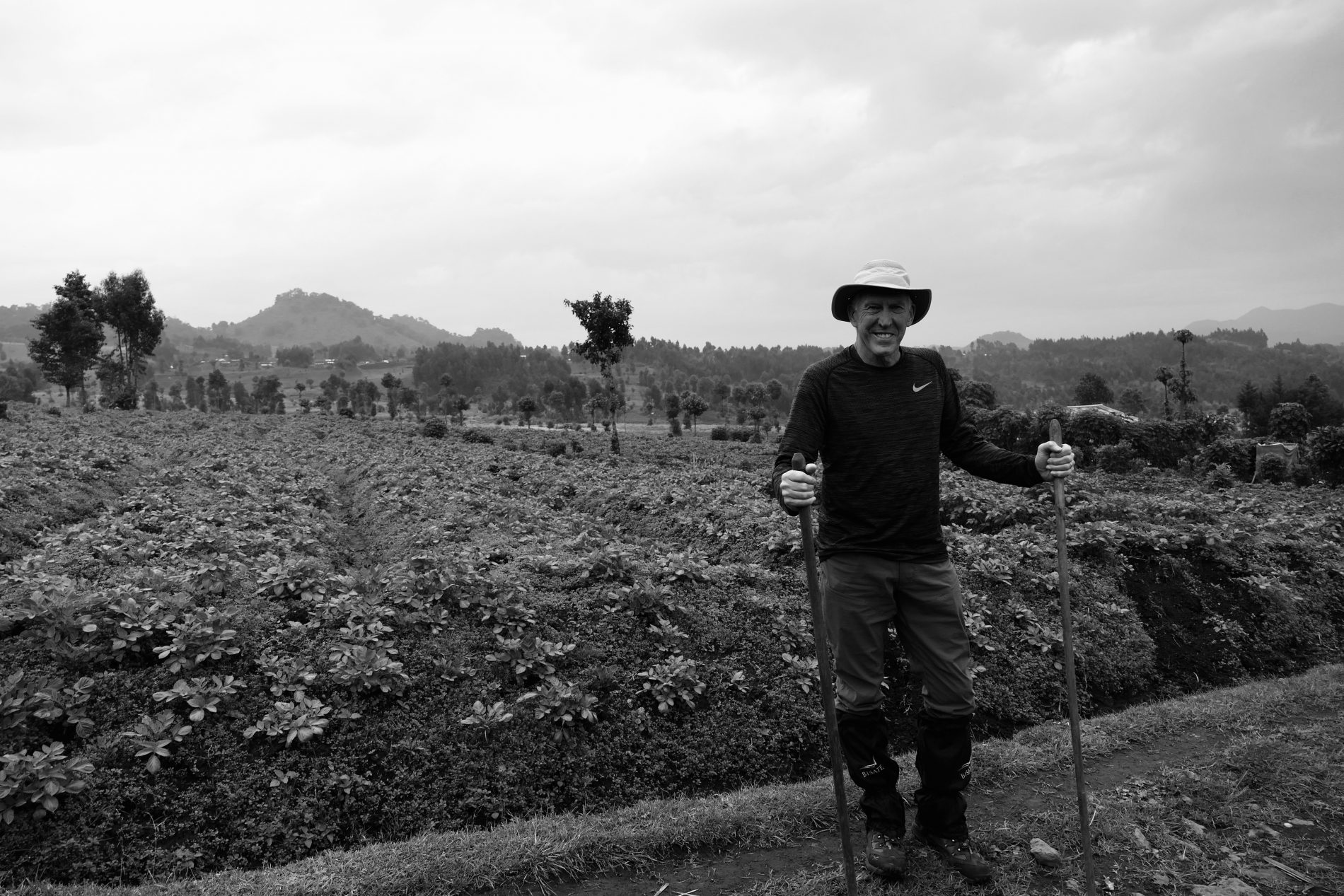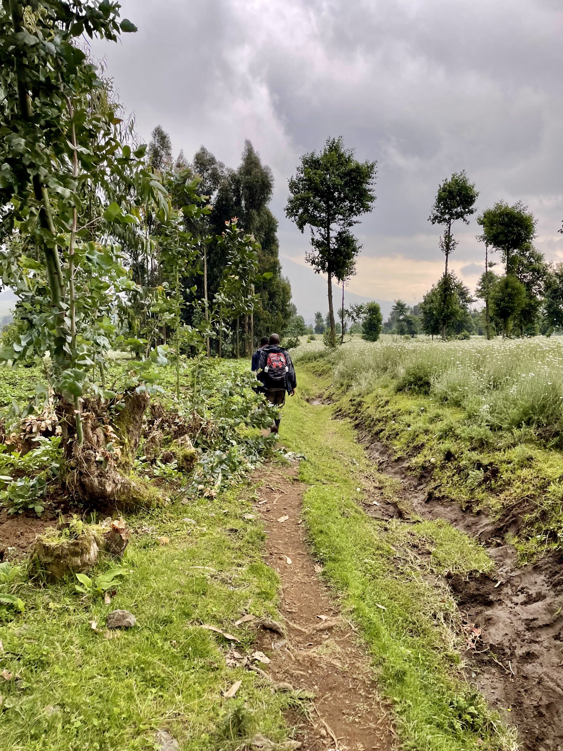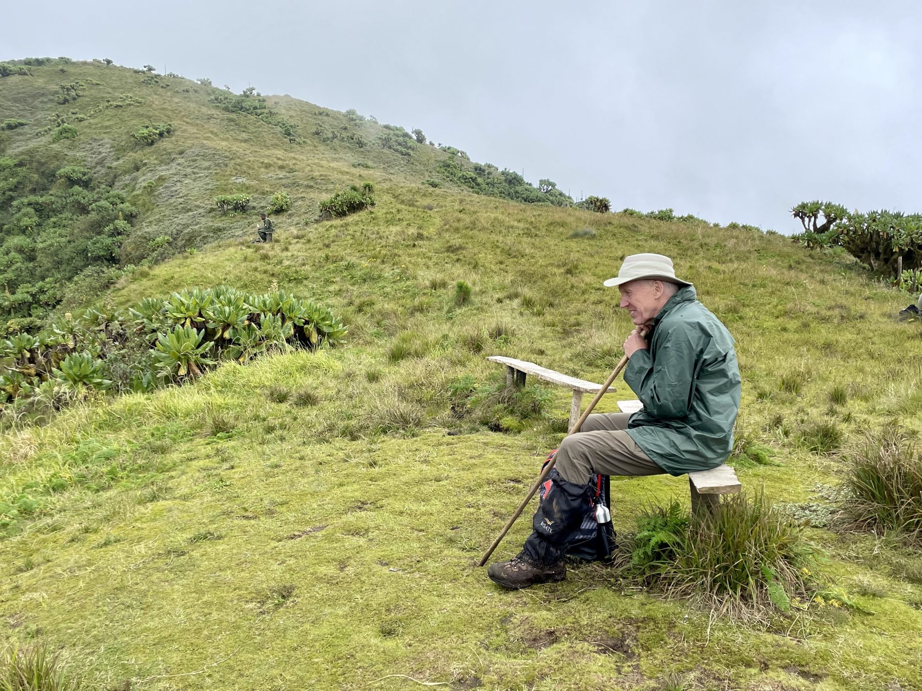 We got to breakfast at 6am for a quick coffee and a bite to eat (our regular routine) and to do final prep – staff helped put on our gaiters and we gathered fresh rain jackets and gloves. The laundry service is incredible here, even our boots are cleaned daily!!! Unfortunately, two of our party were not going to be joining us, Simonne was ill and Wayne had blown out his boot and was going to stay back with Simonne. Given this was a Covid test day they had to come along for the test as results were needed for the gorilla trek the next day, Jason picked them up and brought them back to the lodge, we continued on to our hike. Usual procedure took place – registration, cappuccino from the bistro and allocation of guides and groups with Roger representing us well. Emmanuel was our guide, and we would pick up porters at the start of the trail. The group was just Glenn and I, that should have told us something!!!
