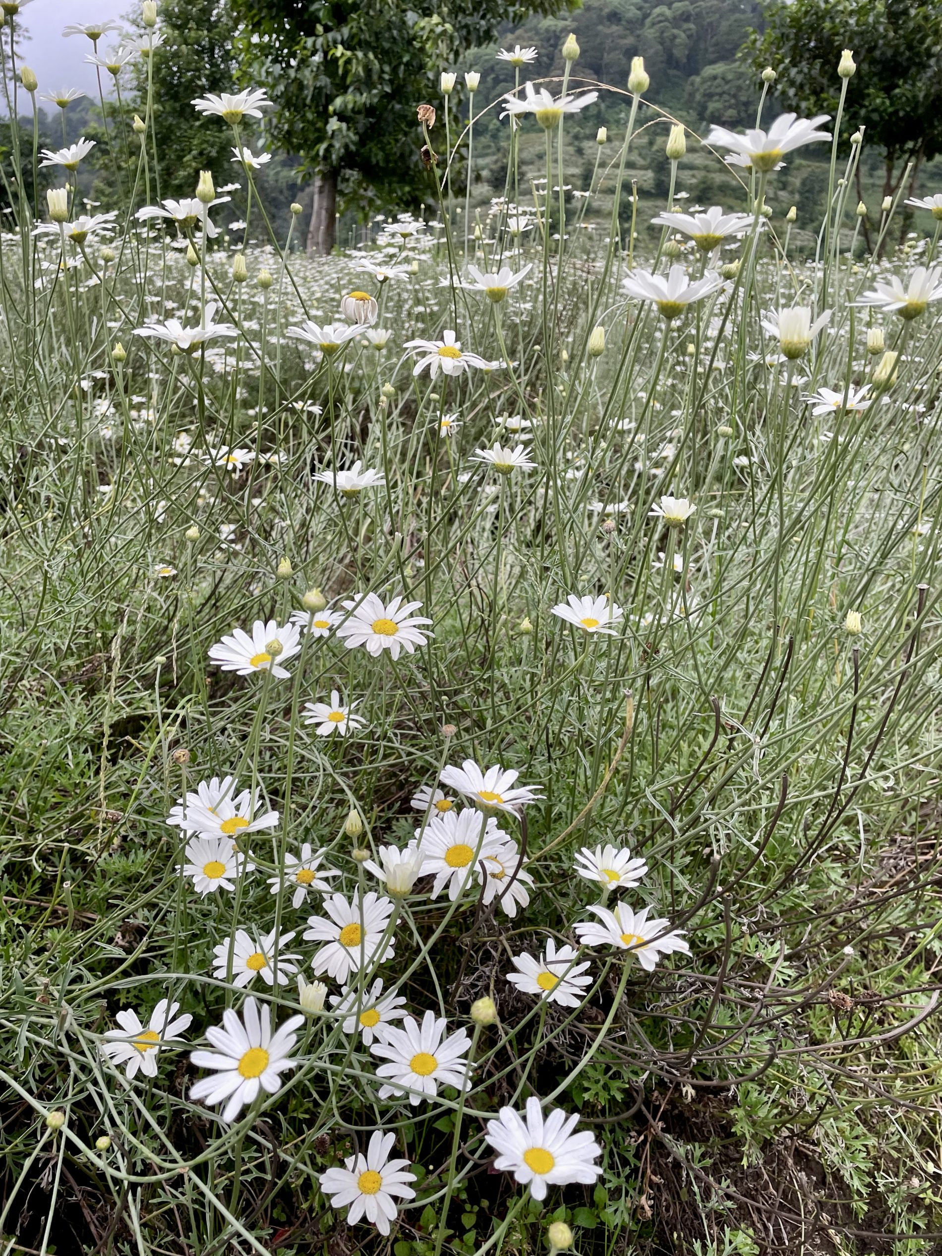 Fact for the day -the white flowers are the pyrethrum plant (photo included below) – a safe and natural pesticide. They dry the flowers to make the pesticide.