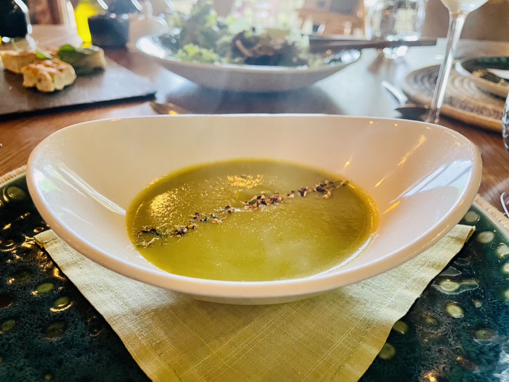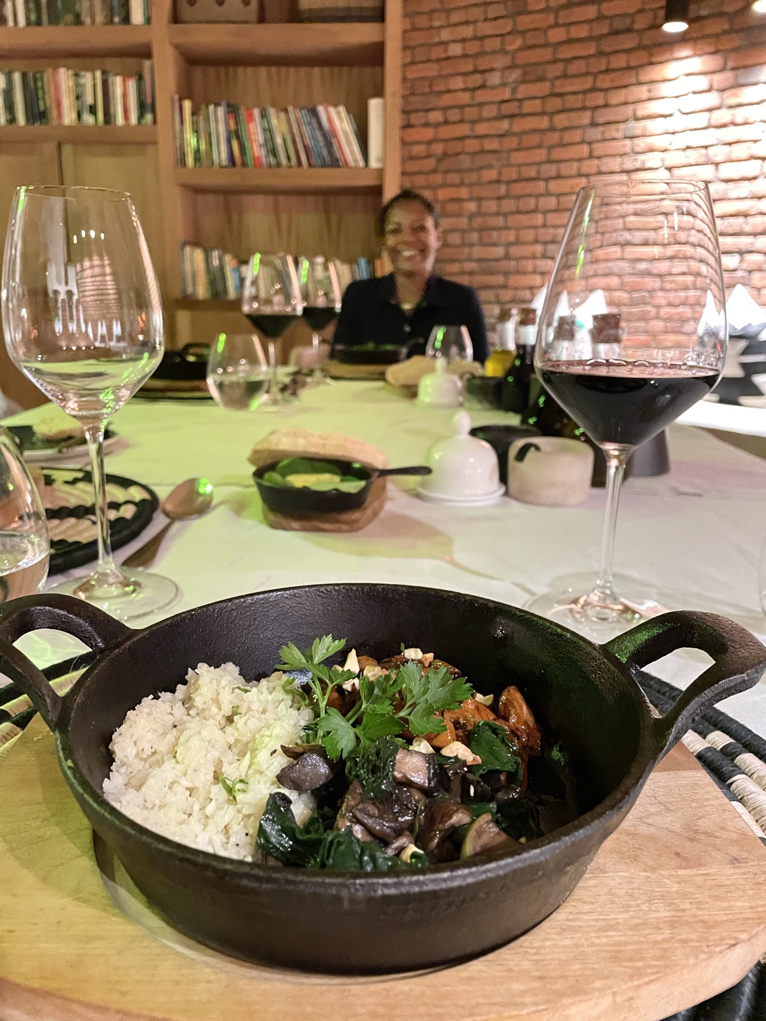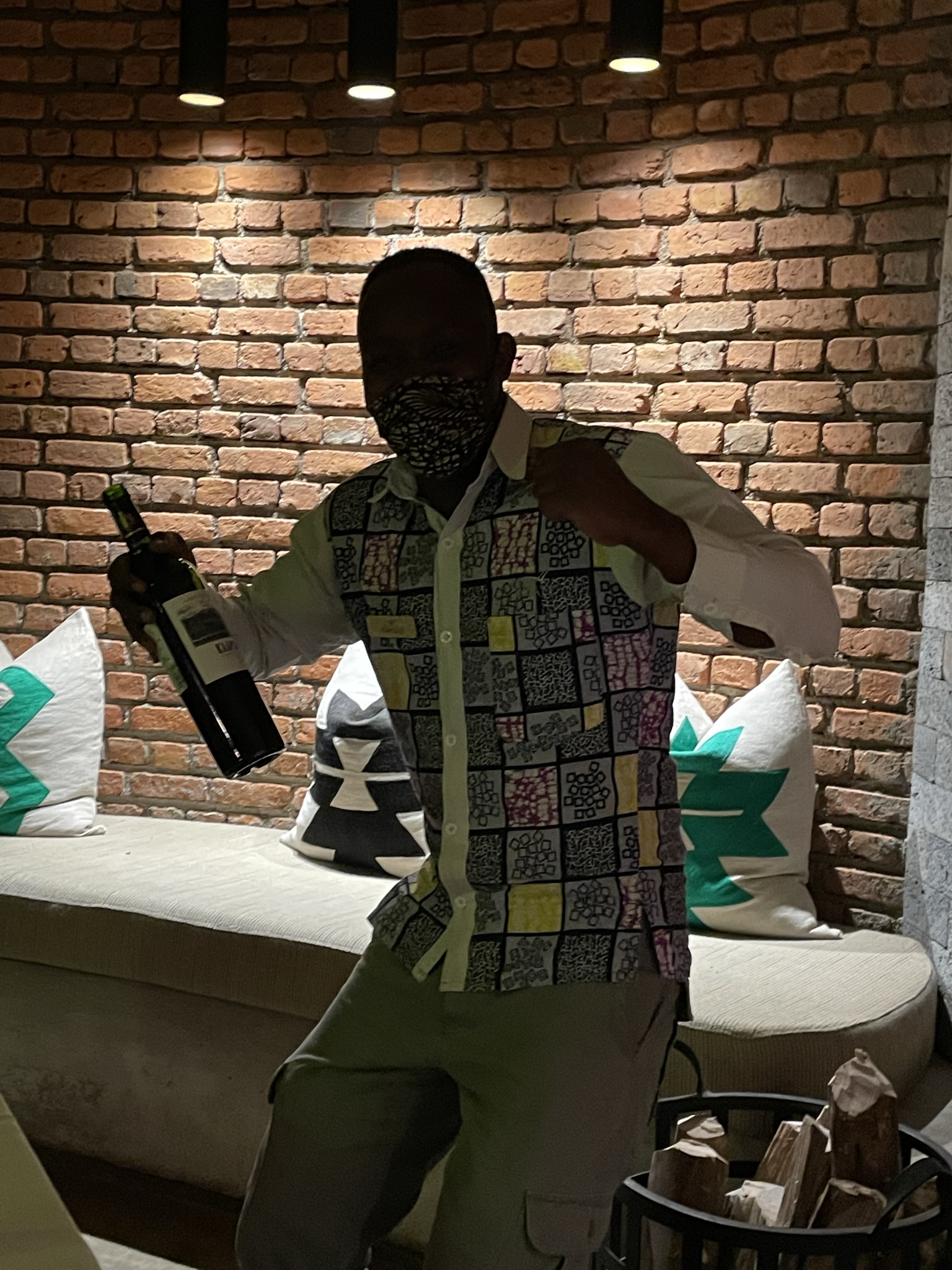 On our way back stopped to take photos of the bicycle taxi – taxi’s in rural Rwanda. Simone took a ride! Fun to experience the rural lifestyle. This was followed by a gorgeous lunch of pizza and soup. The vegetarian soups were delicious, and I made a comment to Alice, before I knew it, I had a scroll with all the recipes. Got to love the attentiveness and service. Glenn and I opted for ntonga massages – these are deep tissue massages that also use sticks, sometimes referred to as an African massage. 90 minutes of bliss and some pain. Those sore muscles need this after our “death march”. 7pm we all gathered for sundowners and met two couples who had recently arrived. Then to our surprise, we were escorted to the wine cellar for a private dinner. Aimable was on top form and took care of us… The main was spicey chicken with cauliflower rice, back choi and mushrooms. Delicious!!! Wrapped up with passion fruit souffle and ice cream. Wayne was the only taker and loved it. We shared stories with Aimable and had great debates about various topical issues while we enjoyed night caps and wine. A perfect way to end our time in Bisate.