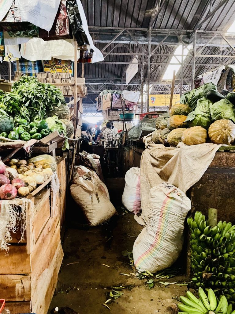 Next was lunch – Wayne was desperate for jerk chicken… This was followed by a visit to the Kimironko Market. A local market that spans clothing to food and everything in between. Our driver wanted to show us some of the local produce including cassava, he survived on Cassava during his escape to the forest at the age of 8 with his younger brother who was only 6. We loved the experience and saw many firsts for example the tomato tree fruit. The photos of the market bring it to life…
