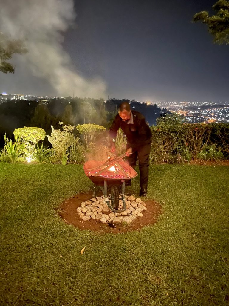 We ended the day being hosted by Emmanuel Nkuranga at Choice Kigali – thanks to Wayne and Simonne who had purchased a painting on day 1 at the gallery. We toured the gallery (found a piece Glenn and I fell in love with and will return for) and tiered gardens then it was time for a tasting menu. After dinner we hung out by the fire pit drinking Chablis and looking over the city discussing a range of interesting topics. Feel blessed to have experienced this.