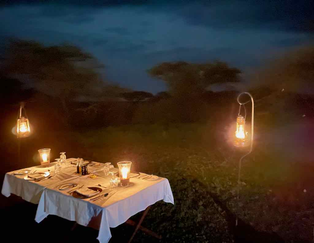 Wrapped up the evening with a delicious dinner, pumpkin soup and lamb, in a romantic settling next to the roaring fire pit surrounded by bush and a couple of grazing zebra.