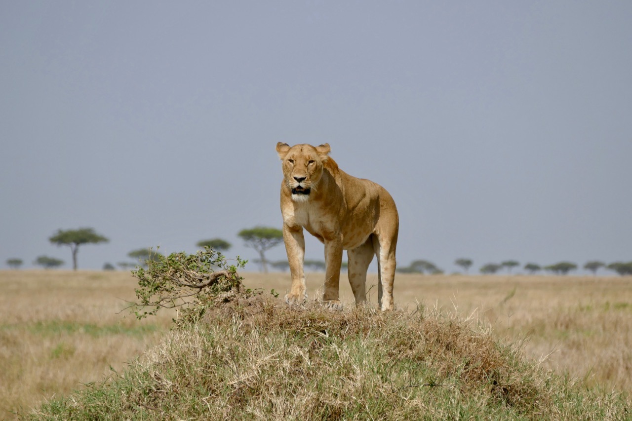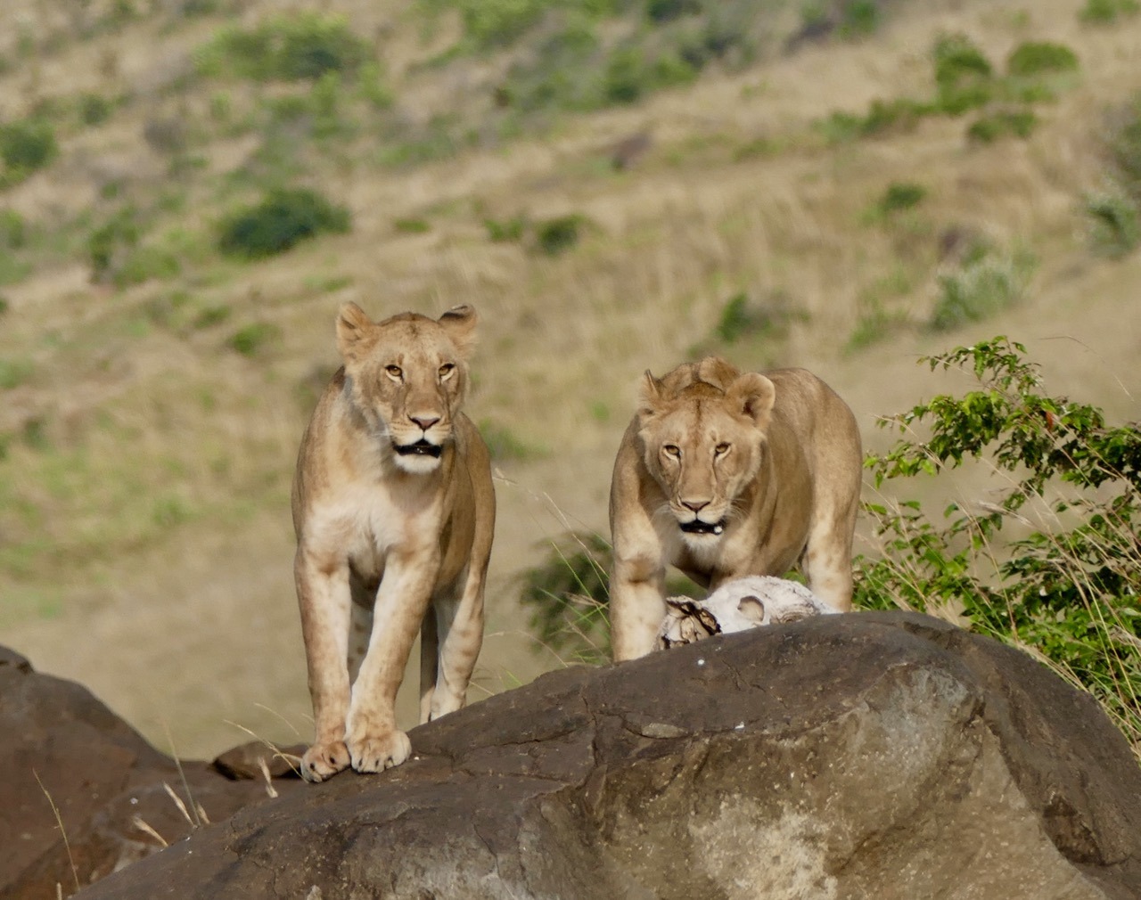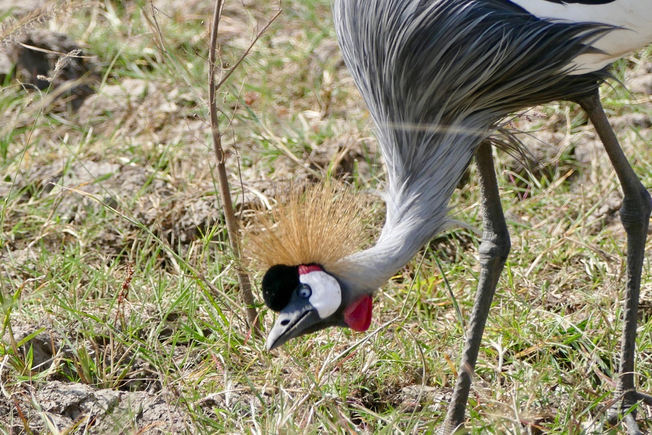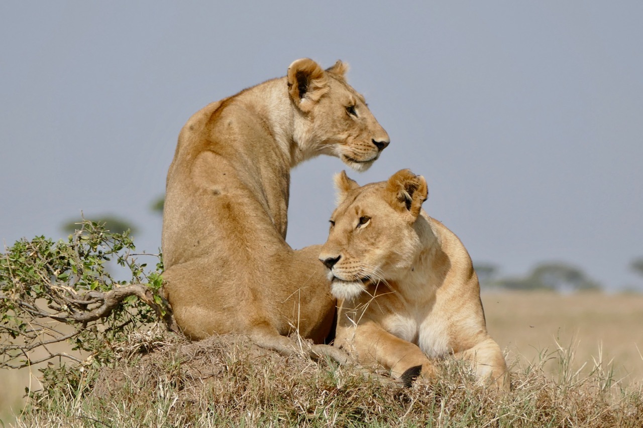 We were off on a balloon safari which is why the early start, what a cool experience, highly recommended! We saw the Masai Mara from a completely different perspective, looking at the plains and escarpment from the air was exhilarating, felt a bit like I was in a movie and floating, not reality. The game were active – I learnt that the grass is actually patterned, it has animal tracks all through it, something I never realized (or saw) viewing game from a safari vehicle! Our trip ended with a rough ride to a champagne breakfast. On the way we ran into a pride of lions – 2 lionesses and 3 cubs. Andbeyond picked us up after breakfast and we joined our safari companions on a game drive. We decided to go looking for the lions we saw earlier, lucky us, our guide found the pride of 5, they had moved and were active and on the move. We followed them for some time, watching them walk, play, stop, look around in search of an entree. Eventually we had an awesome exclusive sighting. All other vehicles had left and we had the pride to ourselves. The lions seemed to be thirsty and went in search of water. As they approached a small pond, a hippo emerged and chased them off. The young cubs pretended to hunt the hippo and we watched as they chased each other around for a bit. Eventually the hippo wandered off grazing and the lions went in search of that entree. The adult lions found a lookout mound, they perked on top searching the horizon, nothing to be found. After some time, they decided to conserve energy and headed for shade and sleep. We went in search of a crossing at the Mara River – saw the most enormous crocodiles and multiple hippo pods. The hippos were in and out of the water and it was incredible to watch. Never seen so many, still quite large, ugly and generally inactive but managed to capture a yawn!!! Also captured some beautiful shots of the Topi (antelope) and Grey Crown Crane. It was a long morning and only got back to our lodge at 2:00pm. Lunch was fresh and light and just what we needed before some rest. Unanimous decision, cut our afternoon drive short and start later.
