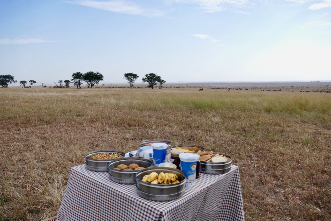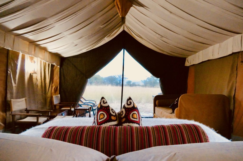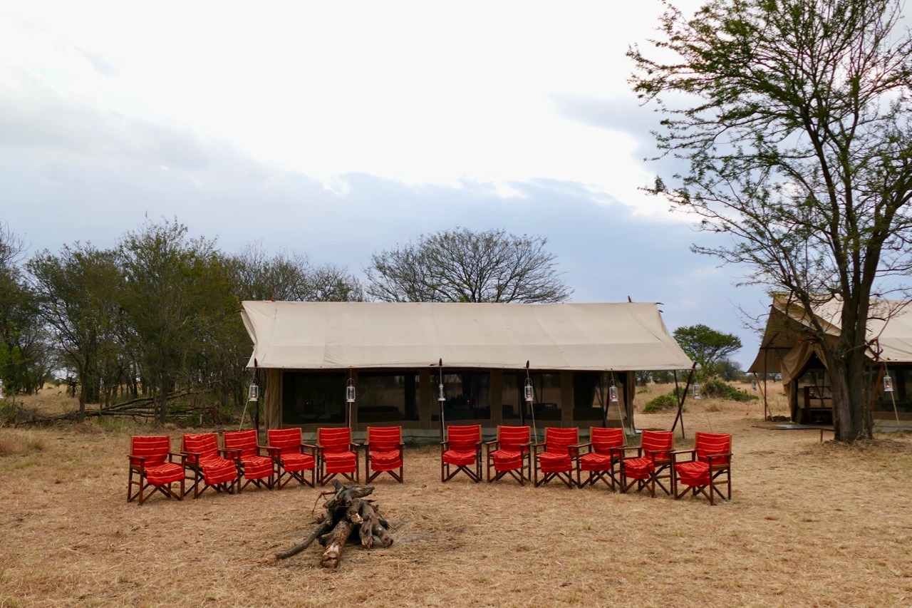 Eventually we arrived at camp welcomed by the staff singing in Swahili. We were in the heart of the Serengeti sleeping in large canvas tents complete with outdoor front porch, Persian rug, bathroom including flushing toilet, bucket shower and our own butler, Edward – not your typical camping, this was glamping at its best. The evening was not too cold, we were able to sit around the fire for sundowners and dinner. Almost full moon, feeling spoilt!!!