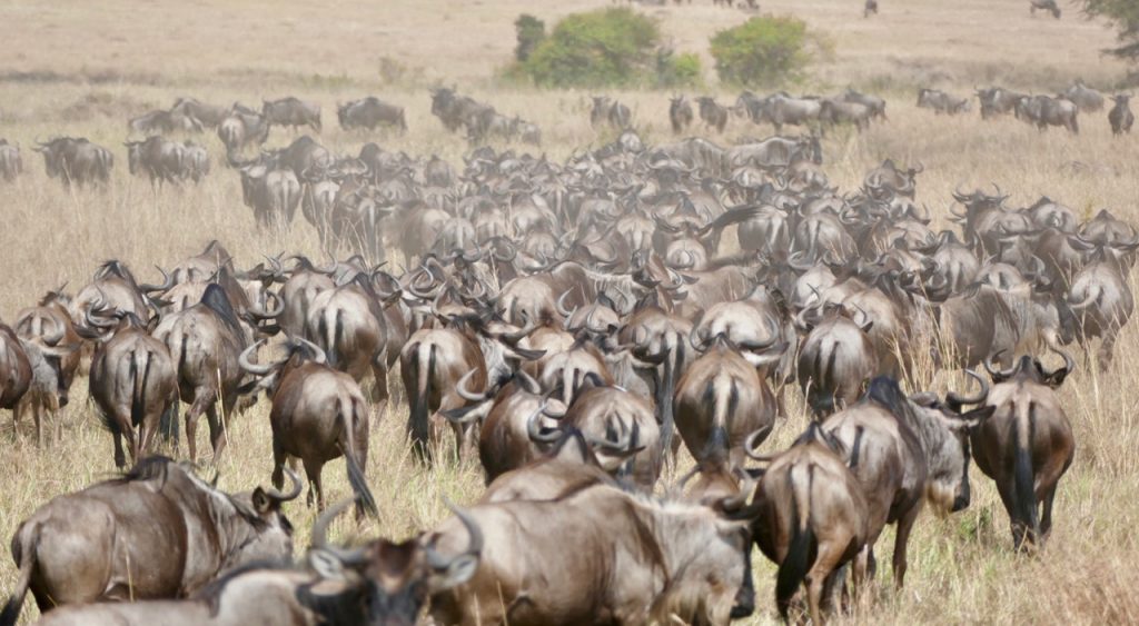 6am we headed out with our guide to watch the herds of wildebeest interacting and tried to witness a kill (ambitious). Also on the lookout for cheetah and leopard. May need a vacation from my vacation, seem to be rather short nights. They were everywhere, as far as your eye could see the wildebeest were grazing and, on the move, every now and then getting skittish, off running and jostling across the savannah. Being able to witness this is spectacular. Of course, as we went along we found lions who were active and on the lookout for food, a pride of 4 tried to stalk a Topi but he picked up their sent and bolted.