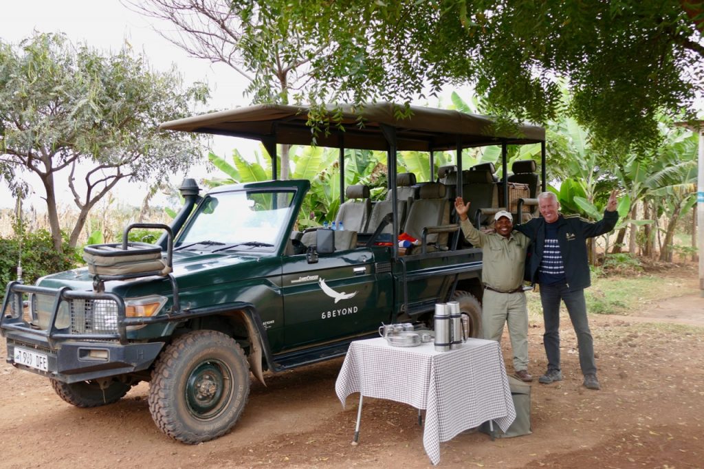 Said our goodbyes to our fellow travelers from Singapore. Delighted to find out our flight was direct, had a beautiful 1-hour journey across the Serengti appreciating its beauty. On arrival at Manyara airport our guide served us a much-needed coffee and discussed the plan. We were joined by two tourists from Xian. It was a long and arduous journey to the lodge taking about 4 hours if you include the sightings and stop for a picnic lunch. Loved seeing the blue monkey and baby elephant. Delighted to reach camp and felt rather dusty. Last drive of the day fortunately.