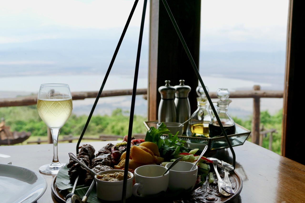 Spent most of the morning on a jeep – did see lions again and again. It took about 2.5 hours to get to Lake Manyara airport where we waited for our next ride to the Crater. That was another 1.5 hours with a stop to buy a permit and again at the view point for a photo opportunity!!! We were happy to reach the lodge. It was spectacular – looks a bit like a hobbit village assuming hobbits live in Morocco… In fact, each room is a cottage and styled after a Masai hut. Inside is opulent, almost tacky but managing to stay classy. Even have a wine cellar for wine pairing dinners and chandeliers throughout. Of course, the backdrop is Ngorongoro Crater and the buffalo and zebra are constantly walking across the grass and making for an incredible view. We opted for a quiet afternoon relaxing and enjoying the environment and each other’s company. The next 2 days were going to be long and full and some down time was quite desirable!!!