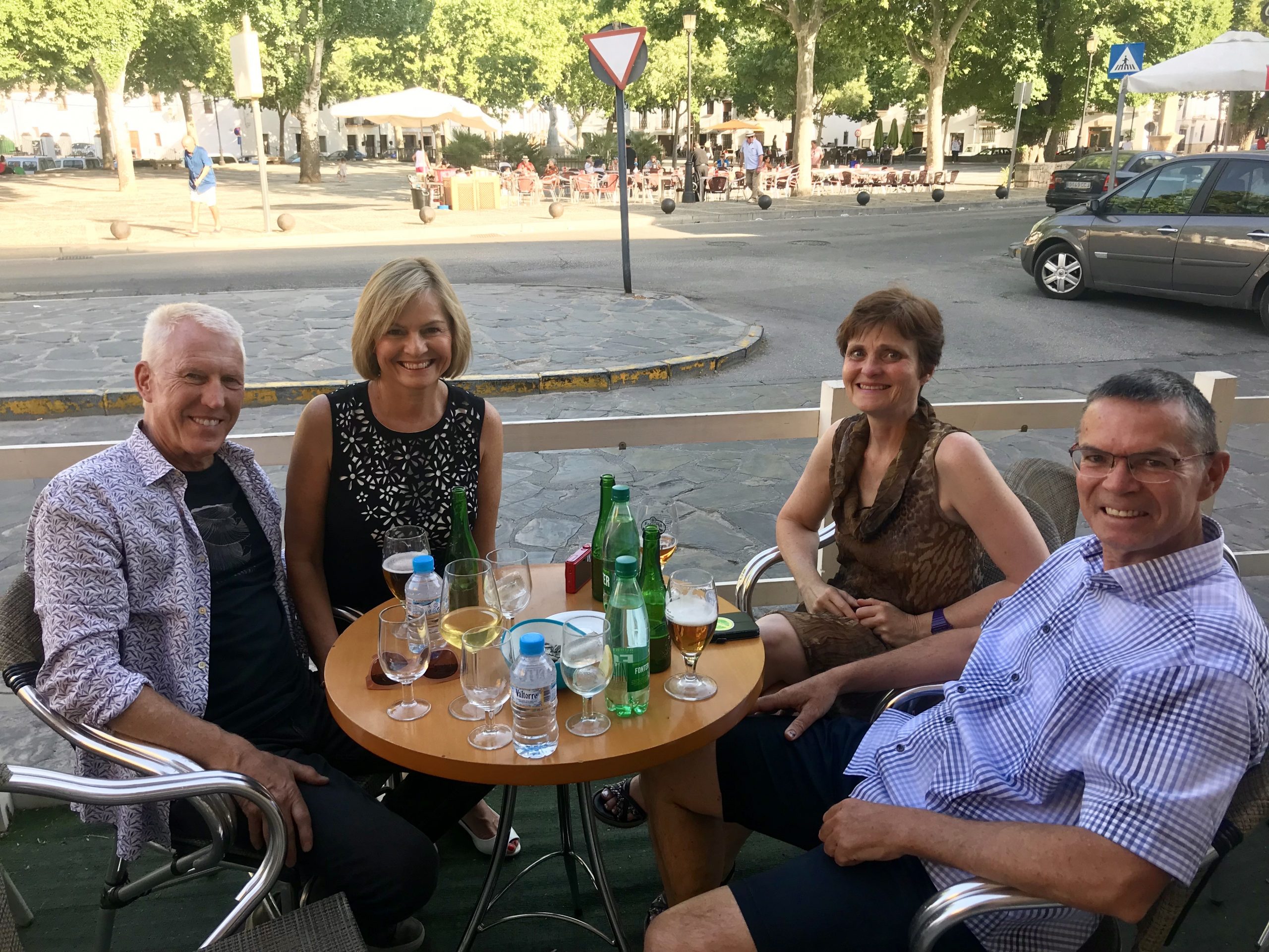 Arrived in Malaga, picked up the rental car and off to Hotel Parador de Malaga Gibralfaro. The Parador sits on the top of a hill next to Castille de Gibralfaro, built in the 14thcentury. Given this was very much a travel day we opted for dinner at the hotel. Of course had to start with “sundowners” at 8pm. Hard to imagine the sun only sets at 9:30pm in Spain in June/July. Sundowners were bubbles all round – local beer for Glenn and cava for me, am tasting cava through Spain, ha ha… someone has to and best of all, Mickey and Andy will join me in the cava tasting!!! Back to dinner, had to try the iberico ham followed by fresh seafood – seabass for Glenn and magnificent octopus for me. Tasted a lovely Tempranillo – great introduction to Spain.
