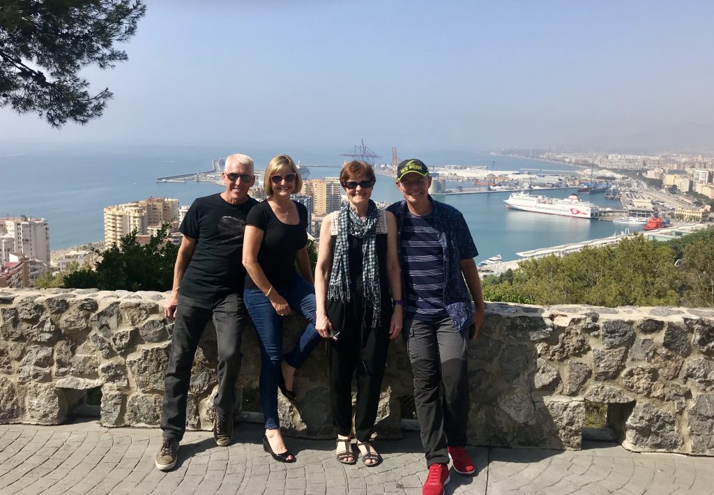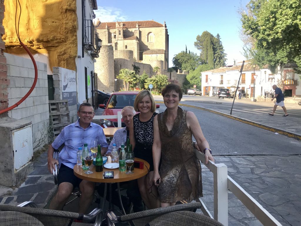 Morning started with a coffee and a conference call (work follows me, yes, I am not retired…) and then we got the call that Andy and Mickey had arrived. Fabulous breakfast sharing stories and catching up. Then a lovely walk to the Castile de Gibralfaro, and down the hill to old town. Time to start our journey to Ronda, our destination the Hotel San Gabriel. 6pm we met our representative from Andalucían Cycling Experience – handover of our specialized hybrid bicycles, information pack, odometer, water bottles and bike lock!!!