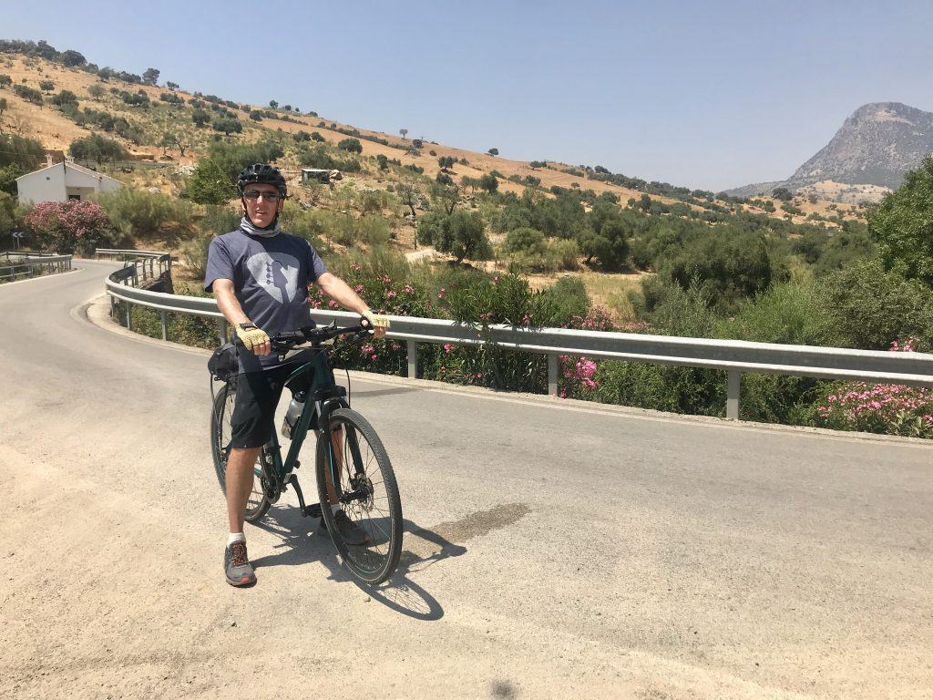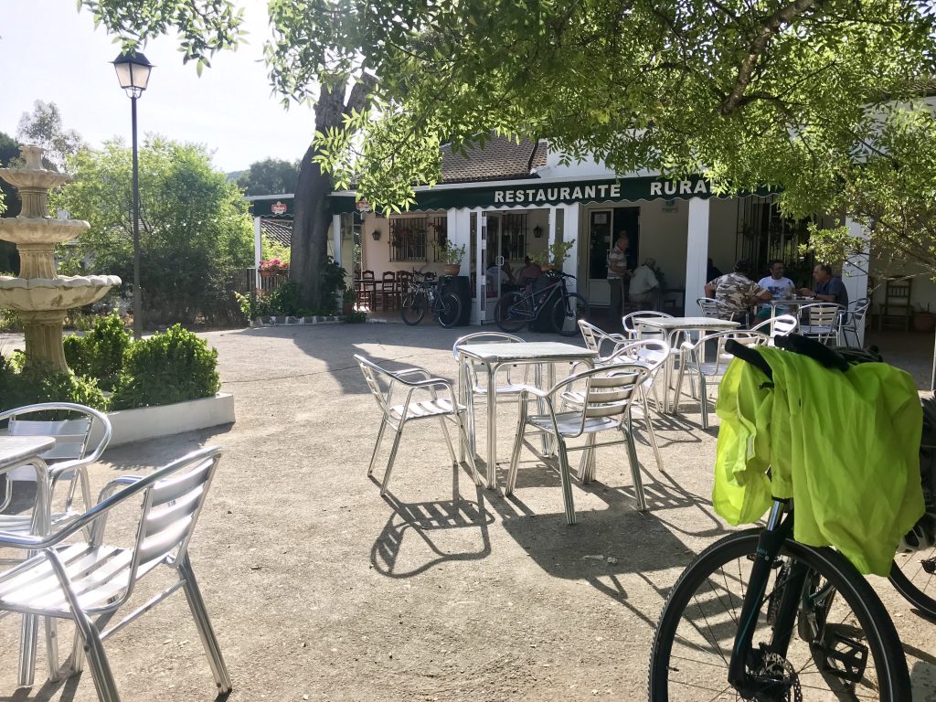 And we are off again following a lovely breakfast, destination Hotel Los Tadeos. We rode through an enchanting cork tree forest in the Grazalema Natural Park to the beautiful white village of Grazalema, which is surrounded on three sides by mountains. Here we had an opportunity to explore the narrow streets, enjoy the beautiful views back across the route we had taken and sample a few tapa’s and local hospitality. After lunch it was back on the bikes to